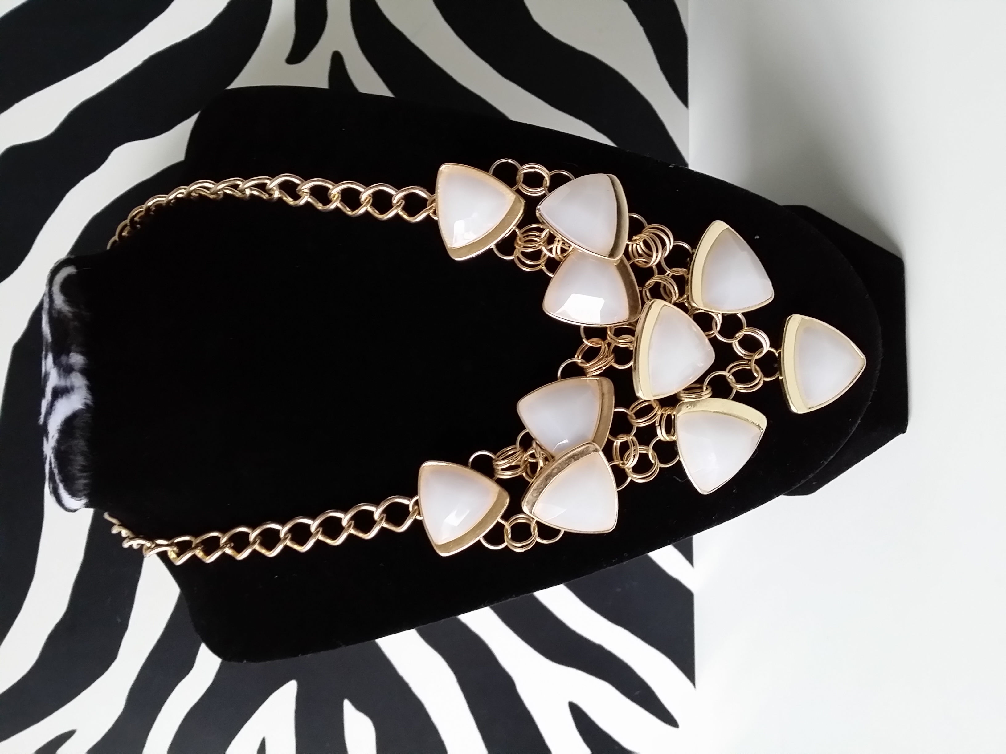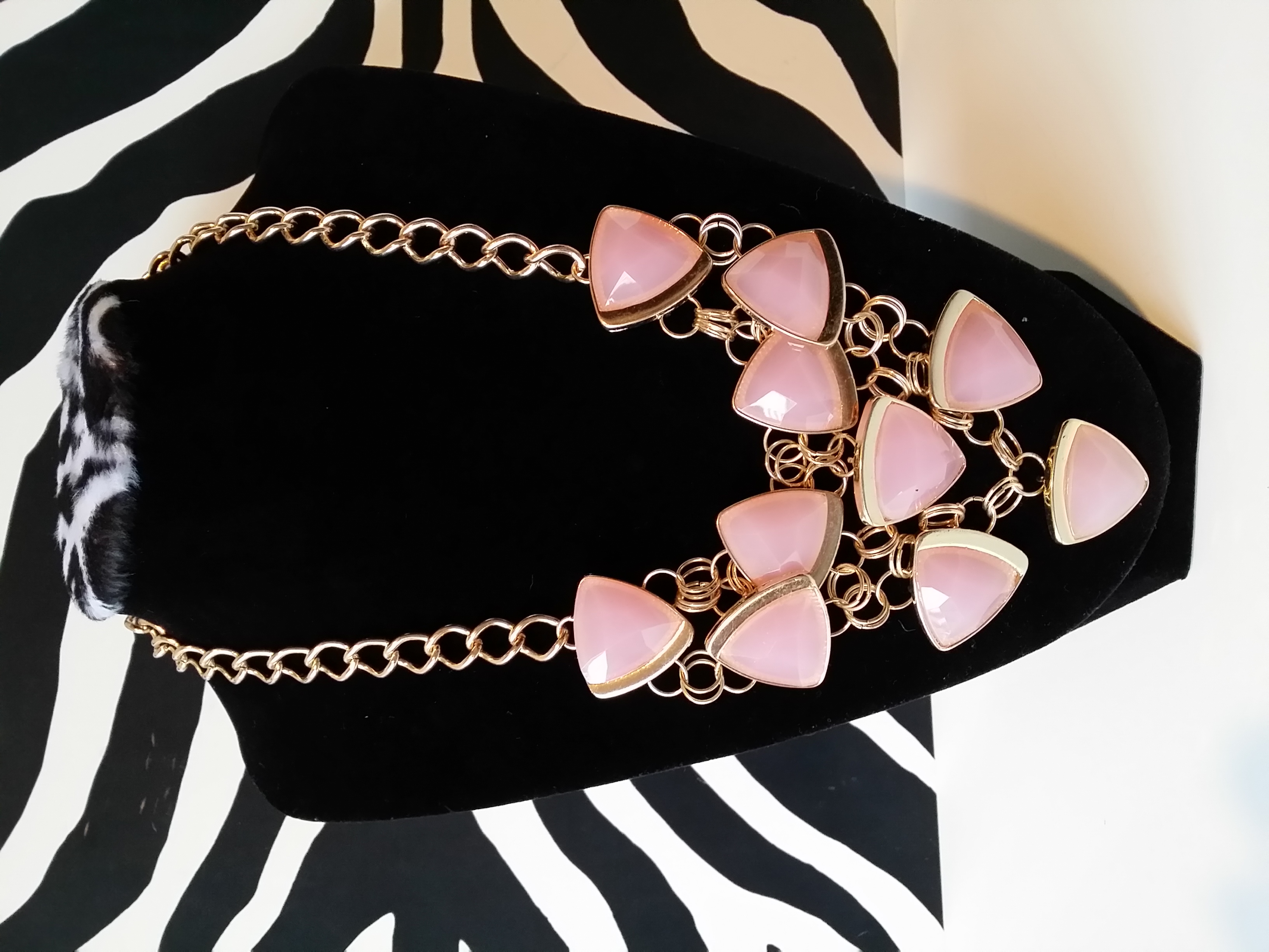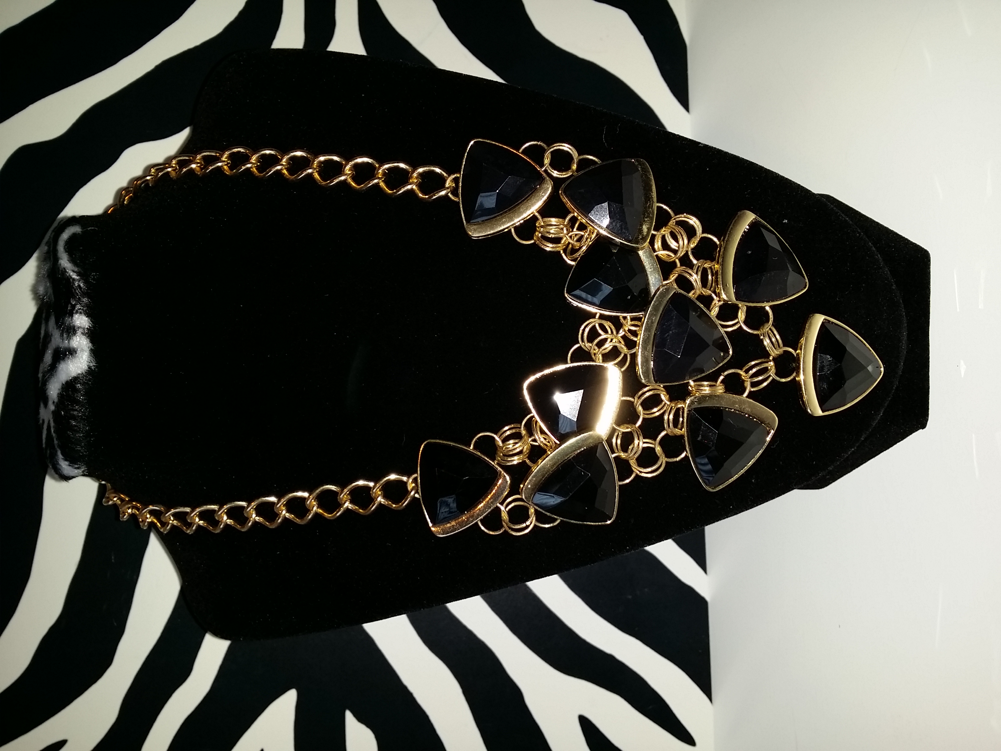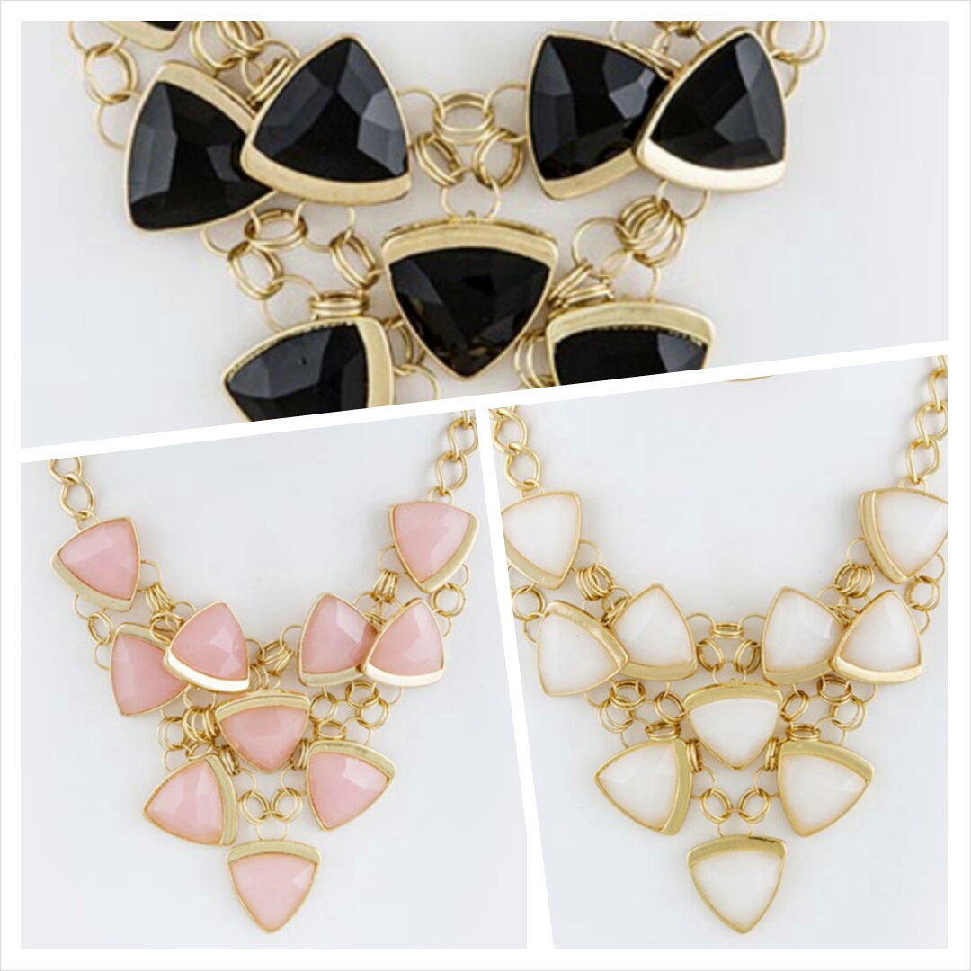-Matching earrings included -Colors: Black/Gold, Pink/Gold, and Ivory/Gold
