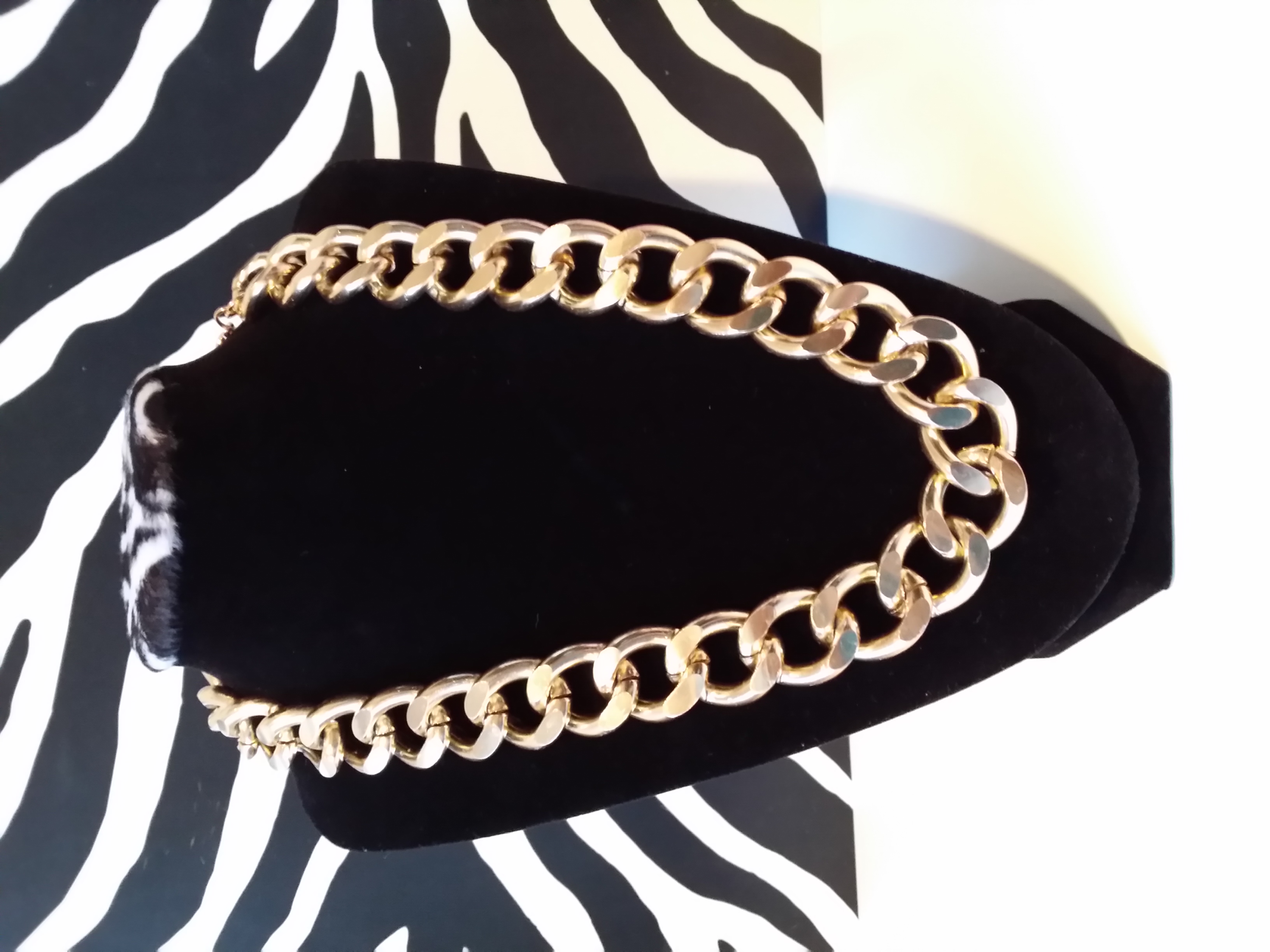 Length: 17"L x 3/ 4'W x 1/4" Thickness; extender 3"L Matching earrings included Available in Gold